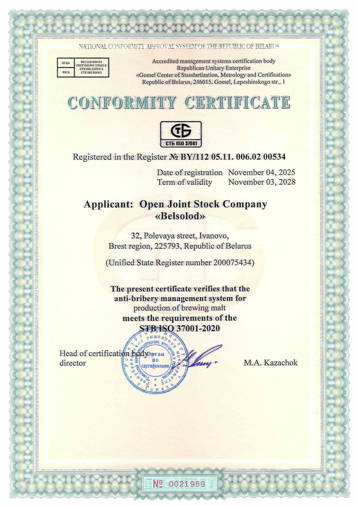 Belsolod is a malting company from Belarus that has been specializing in the production of brewing malt since 1989. Large beverage groups and small craft breweries from across the globe make beer from our malt. It is our priority to help our customers make excellent beer.